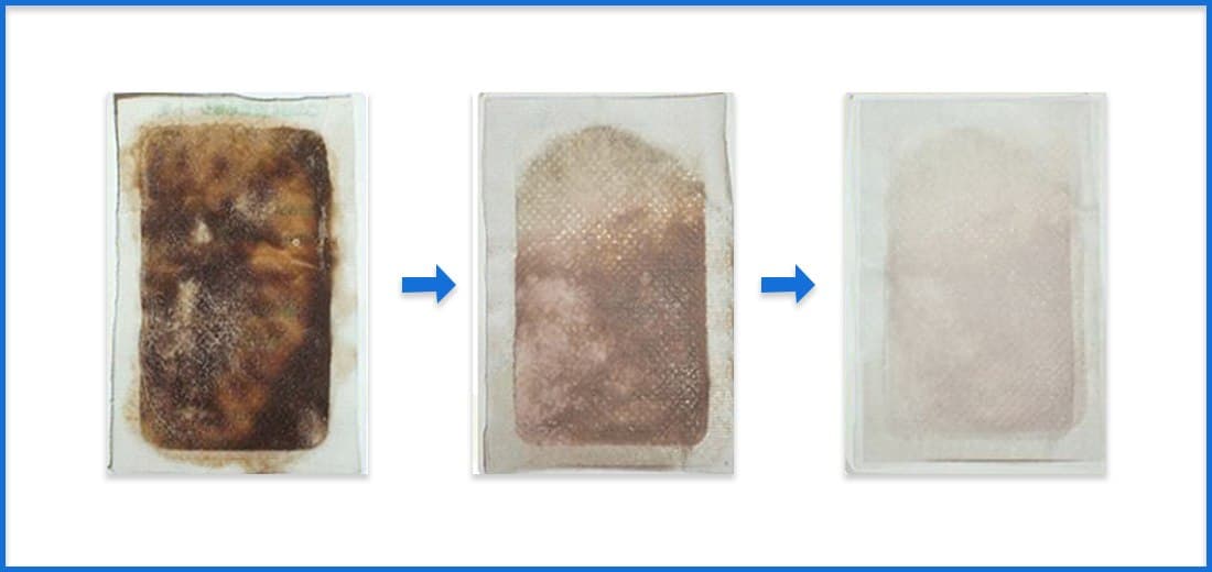 The level of discoloration usually differs. And it reduces with use till all impurities are drawn out from the body.
